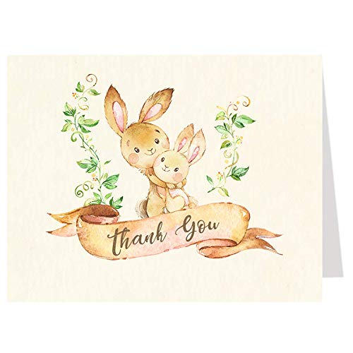 Thank guests for attending your baby shower with this adorable mommy and me bunny card! Thank you cards feature watercolor mother and baby bunny on the outside with blank white space on the inside, perfect for writing a personal note! Includes white envelopes. Product Features ♥ Listing includes 50 thank you cards and 50...