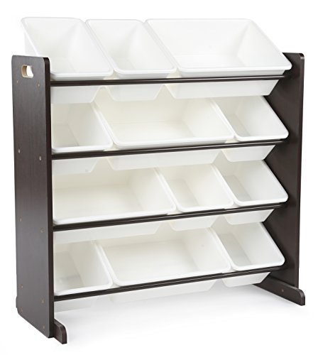 This space-saving Tot Tutors kids toy storage organizer with 12 plastic bins stores lots of children’s toys in easy-to-see, easy-to-access plastic bins. The 8 standard and 4 large easy access storage containers are removable, making it fun for kids to take out toys, books, and games for playtime and quick to clean up after....