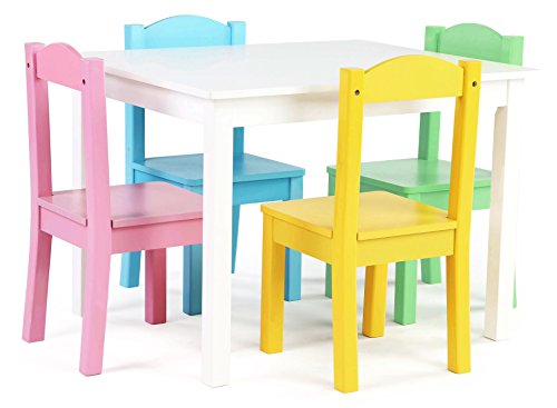 The Tot Tutors Kids Wood Table and 4 Chairs Set is the perfect size for children to eat, read books, color, do arts and crafts, play board games, and just have fun. The table and chair set is ideal for your toddler’s bedroom, playroom, or the living room. This piece of furniture is easy...