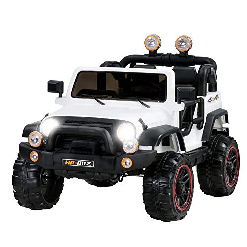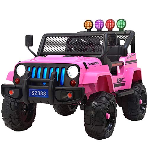 Uenjoy Ride On Jeep Product Features 🚗REMOTE CONTROL: kids age from 3-6 could ride this toy by gear shift, steering wheel and gas pedal. Parents could override kids control by remote control. Fun & Safe. 🚗COOLEST CAR: More stylish outlook design, with head lights, blue in intake grill lights and...