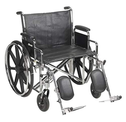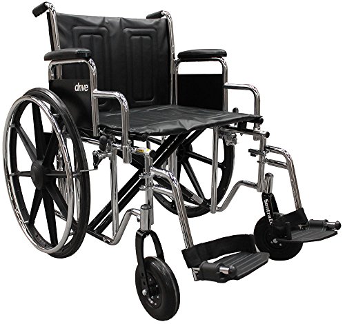 The Bariatric Sentra EC Heavy Duty Wheelchair with Detachable Desk Arms and Elevating Leg rests by Drive Medical comes with a Dual Cross Bar that reinforces the carbon steel frame, making this chair capable of a 450 lbs. weight capacity. The carbon steel frame has an attractive, chip proof, maintainable, triple coated, chrome finish...