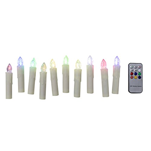 TBW Candles Mini Colorful Taper Candles Christmas Tree Candles Holiday Pary Decoration Specification * Material: Plastic and ABS * Measurements: Each candle measures approx. 0.7” diameter, 4” height * Flash mode: Flicker flame * Work time: 140 hours * Battery: 1xAA batteries (not included) * LED color: Amber flicker * Remote: 7 keys *...