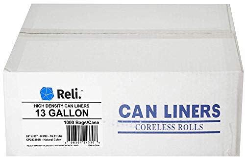 About Reli. Easy Grab Trash Bags: Each case includes 1000 Trash Bags developed and distributed using Reli’s global and domestic operations to enable premium quality, while maintaining wholesale quantity & prices. Each of the 20 rolls (50 bags each roll) is coreless and compact, offering easy storage until you are ready to use the...
