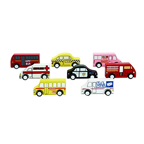 This fun set includes 1 of each: ambulance, City bus, fire truck, ice cream truck, mail truck, police car, school bus and Taxi. *Wheels really roll! each measures 4 inch L x 1 inch W x 2 1/4 inch H colors and designs may vary from picture – discount school supply item # TRUCKS....