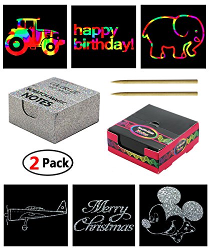 AxPower 230 Sheets Scratch Pads Description: 1. This product includes 230 sheets scratch papers. 100 sheets are glitter style, another 130 sheets are rainbow style. Two styles offer you double fun. 2. This scratch pad can be used to be an adult doodle pad, kids art crafts, write thank you cards or I love...