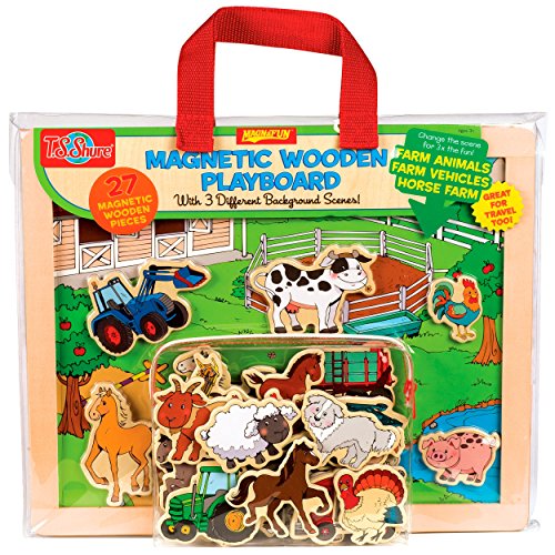 T.S. Shure Farm Animals, Horses and Vehicles Wooden Magnetic Playboard Set Encourage hours of pretend play with the Farm Animals, Horses and Vehicles Wooden Magnetic Playboard Set. This expansive set includes 3 illustrated horse farm scenes that can be integrated into the frame of the wooden magnetic playboard, offering hours of hands-on imaginative play....