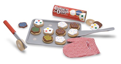 This colorful wooden set includes 12 wooden, sliceable cookies and 12 toppings, wooden knife, spatula, cookie sheet and a kitchen mitt for safe, “low-calorie” play! The cookies store in a durable dough tube.Melissa & Doug Product Features Colorful wooden play food set includes 12 sliceable cookies, 12 toppings, knife, spatula, cookie sheet, and kitchen...