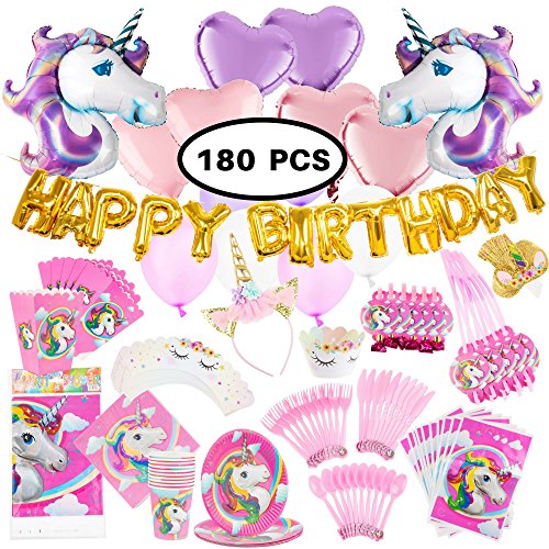 PARTY SUPPLY PROS | UNICORN BIRTHDAY PARTY SUPPLIES PARTY SUPPLY PROS is THE ONLY Unicorn-Themed Birthday party pack that SAVES YOU MONEY! An amazing Value Packed kit! Perfect for childrens birthday party supplies and unicorn party supplies for adults. 180+ PCS – Here’s What You Get! ✔1 Glittery Gold and Pink Unicorn Headband with...