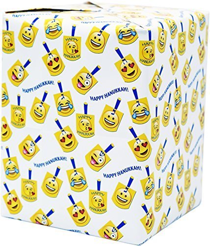 Hanukkah Emoji Dreidel Happy Chanukah Gift Wrap, 2 Sheet Value Pack With 2 Blank “Thank You” Card Attachments